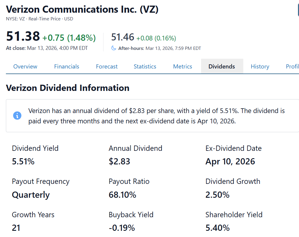 Verizon Communications Inc. continues to attract investor attention as a reliable dividend payer within the telecommunications sector.